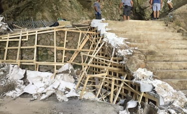 ✦ From the set: The crew got very fit on those five hundred steps. Luigi Sergiani's simple but brilliant rigging system — no technology, just ingenuity — moved an entire construction site into a sea cave.