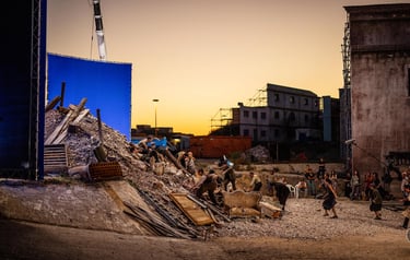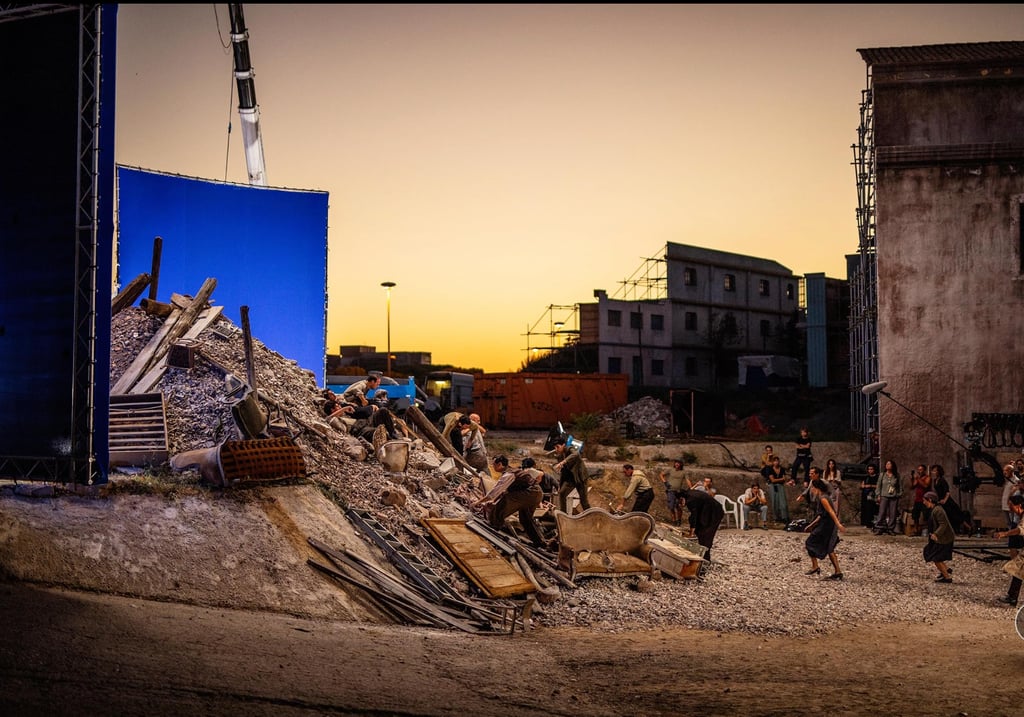 The production required the transformation of three distinct worlds. The bombed streets of wartime Naples were filmed on location. Trieste — with its brick architecture and historic port — became 1940s New York.