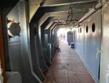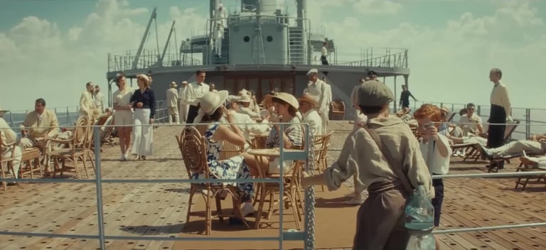 The third element was the ship: after an extensive search across Europe, the production located the former yacht of Josip Broz Tito, moored in Kraljevica, Croatia — the only available vessel with a profile close to a 1940s Italian ocean liner. As Supervising Art Director, Romolo Pompa led its complete scenic transformation into a transatlantic bound for New York.
