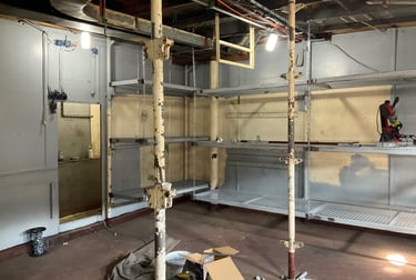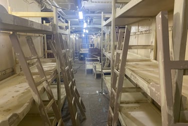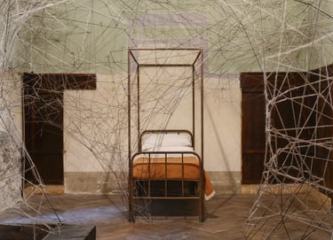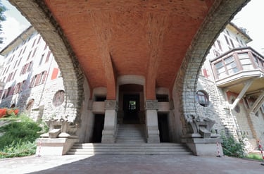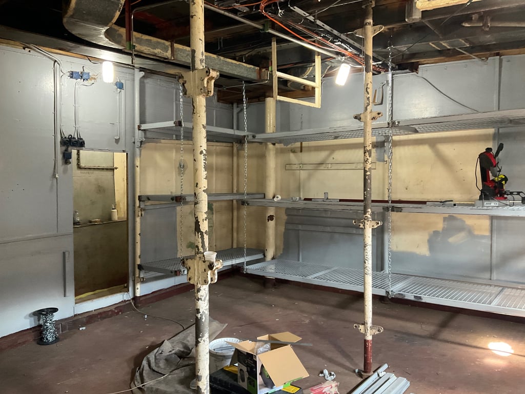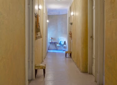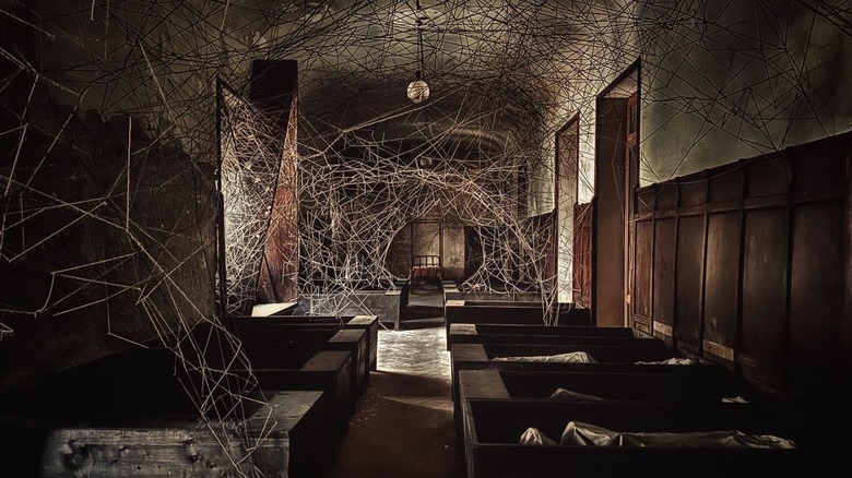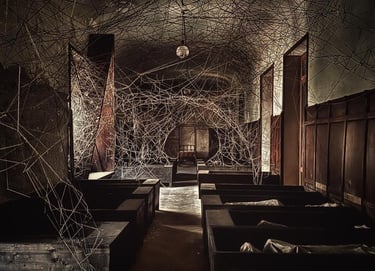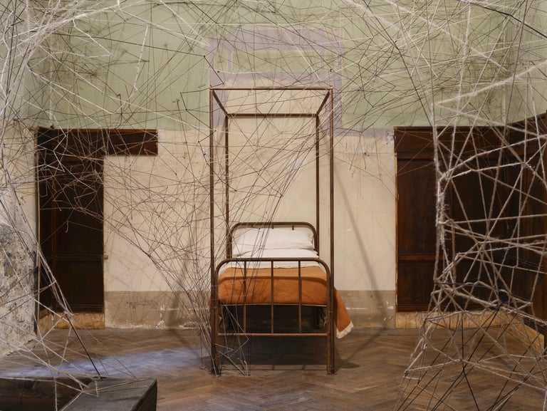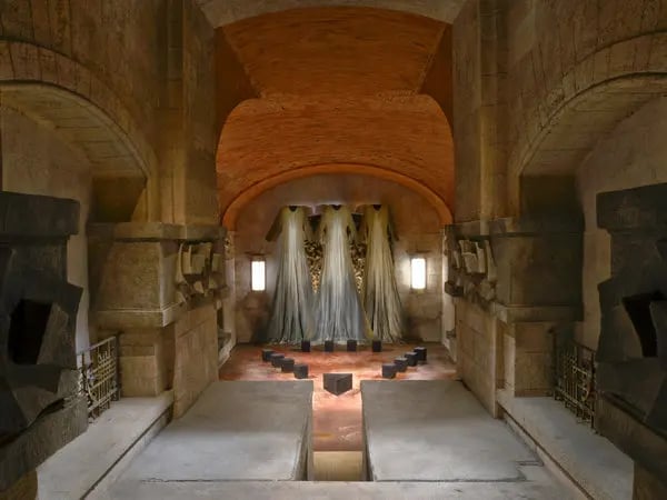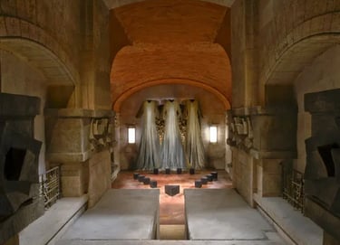 Beneath the hotel, a labyrinth of underground spaces — ancient kitchens, a cellar carved into rock, hiddencorridors — became the dark heart of the production.