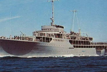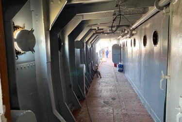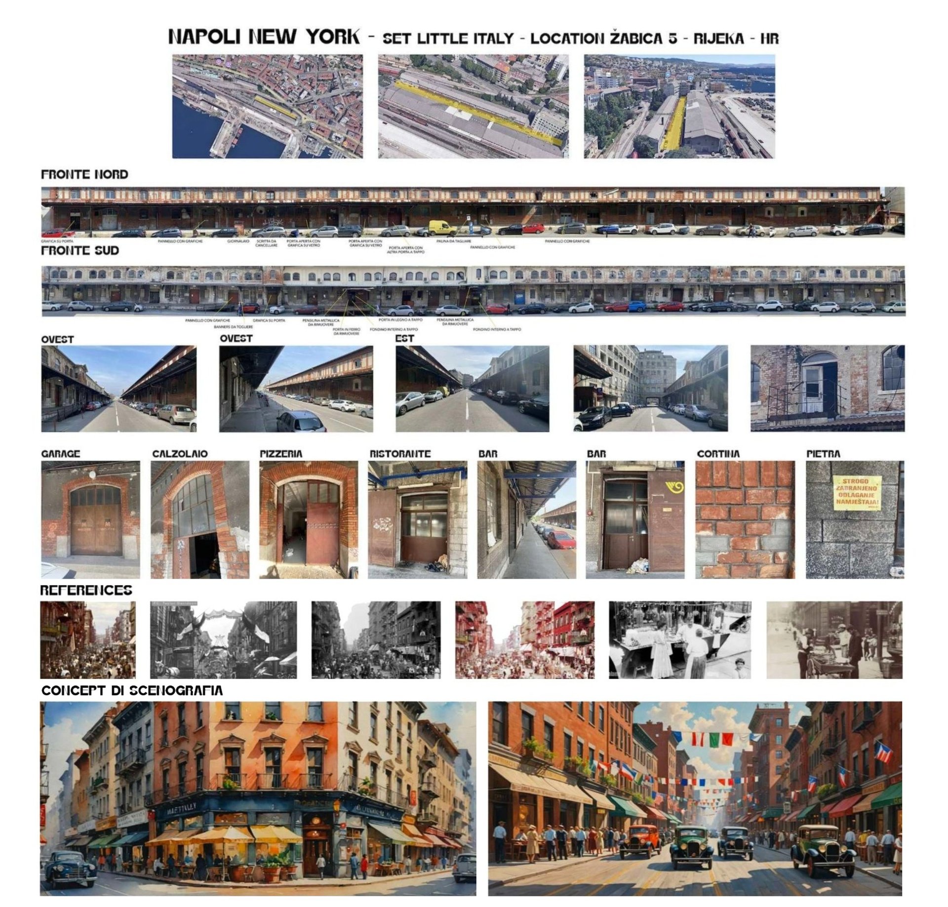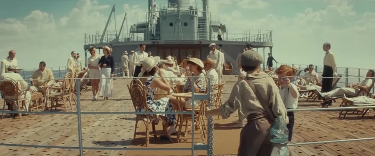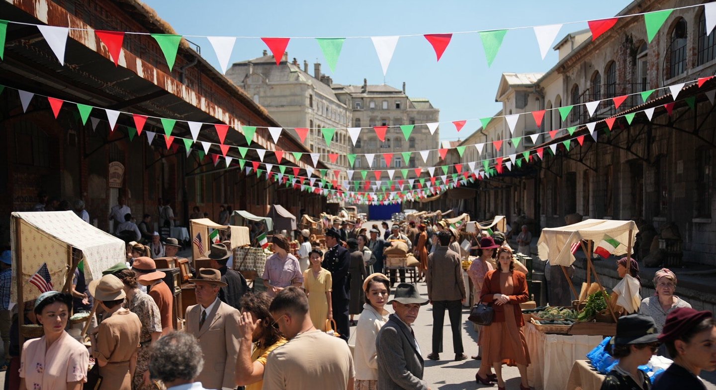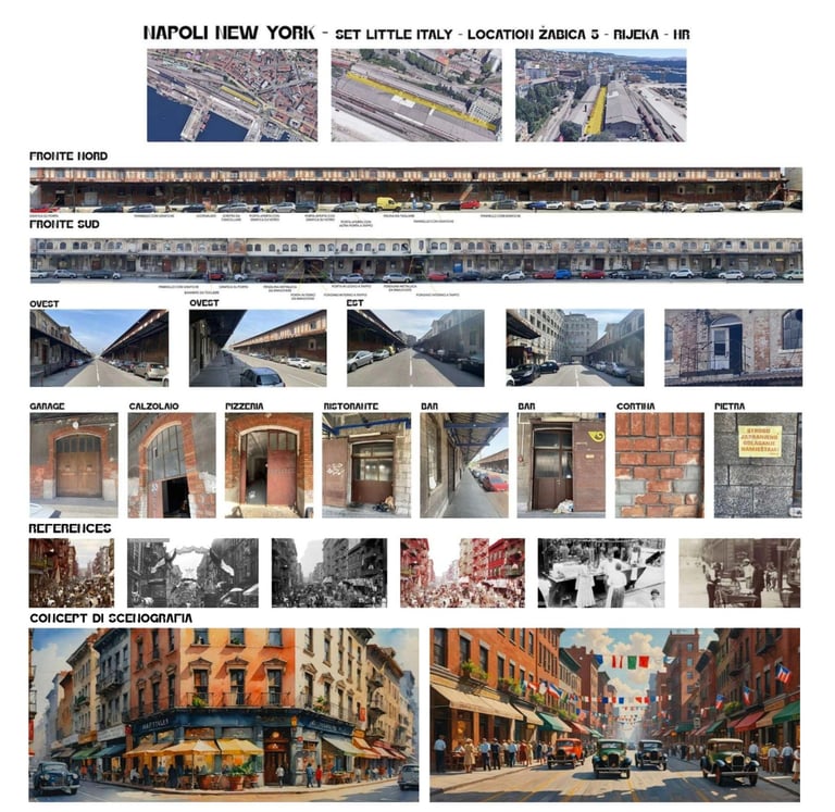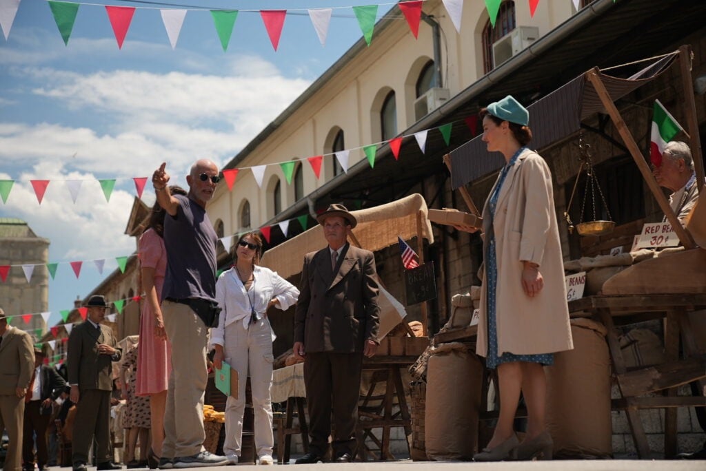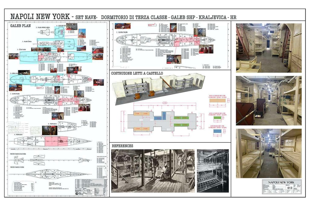 The production required the transformation of three distinct worlds. The bombed streets of wartime Naples were filmed on location. Trieste — with its brick architecture and historic port — became 1940s New York. The third element was the ship: after an extensive search across Europe, the production located the former yacht of Josip Broz Tito, moored in Kraljevica, Croatia — the only available vessel with a profile close to a 1940s Italian ocean liner. As Supervising Art Director, Romolo Pompa led its complete scenic transformation into a transatlantic bound for New York.
