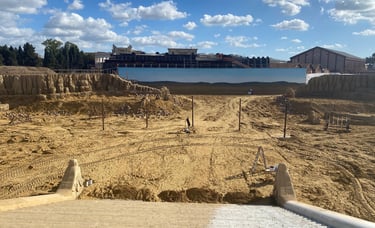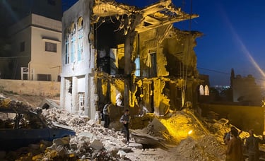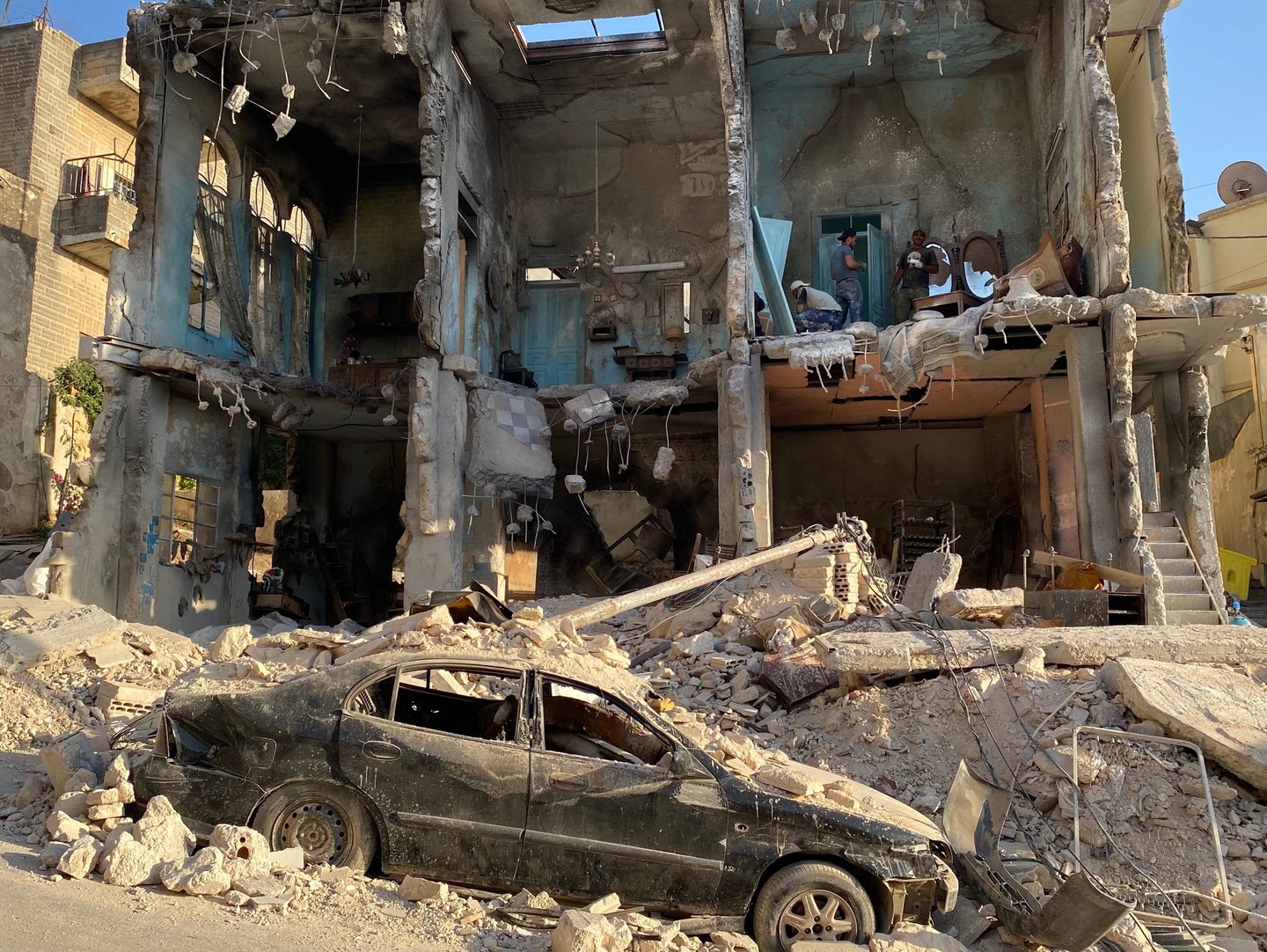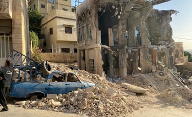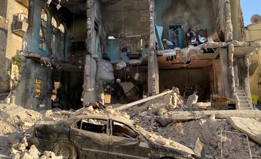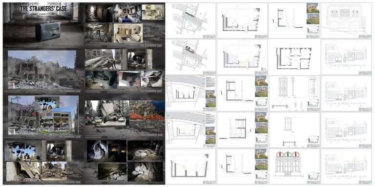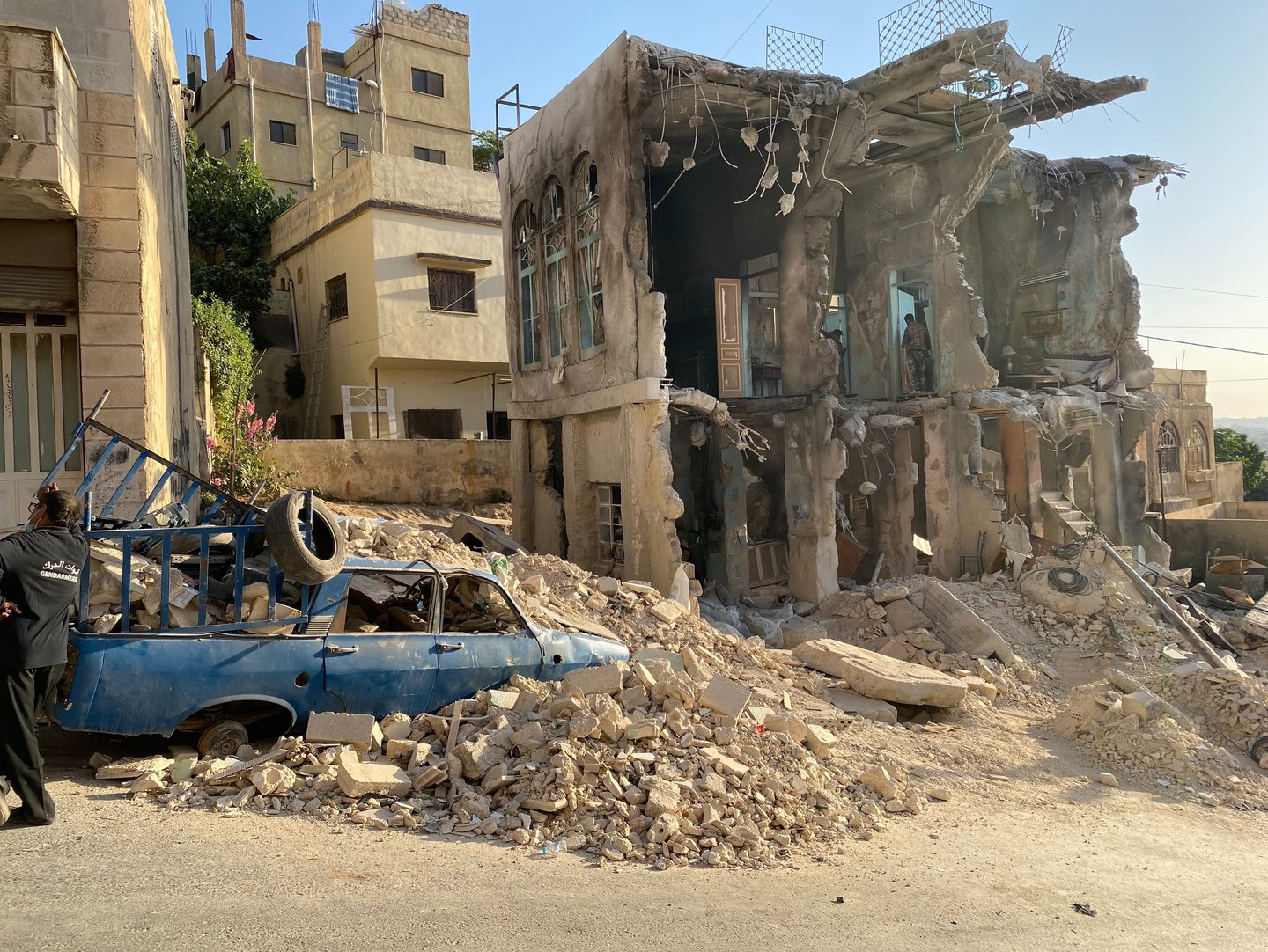 A residential building in central Amman was dismantled and entirely rebuilt on a new location — transformed into a bombed-out ruin with rubble, debris and destroyed vehicles. The complete build was delivered in one month. The set was dressed to the standard required by a film shot with real Syrian refugees as extras, directed by an activist who had spent years documenting the crisis on the ground.