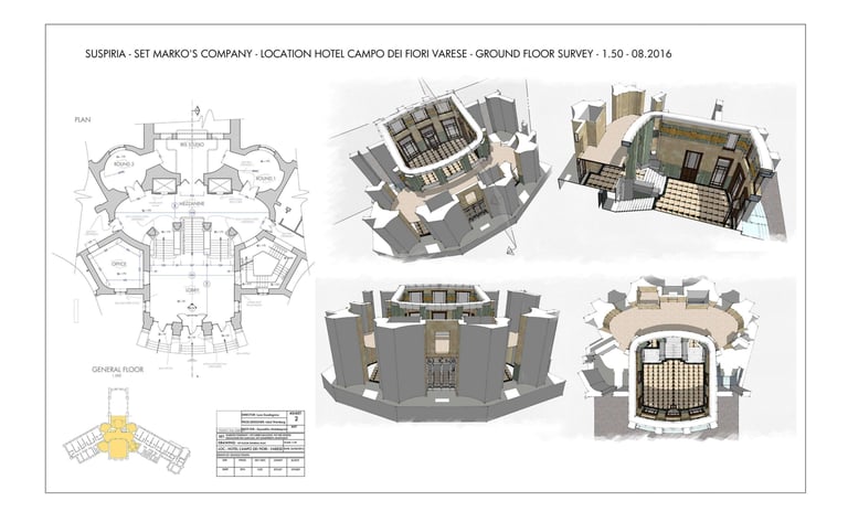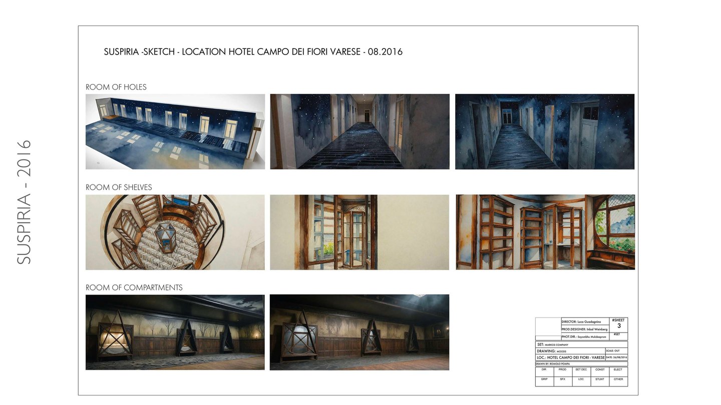 The entire film was shot inside the Hotel Campo dei Fiori in Varese — a breathtaking Art Nouveau hotel built in the 1920s, open for only twenty years before becoming a military hospital. Every decorative Liberty element was concealed and the hotel transformed into a severe 1960s-70s Berlin dance academy.