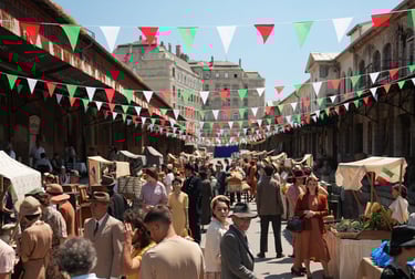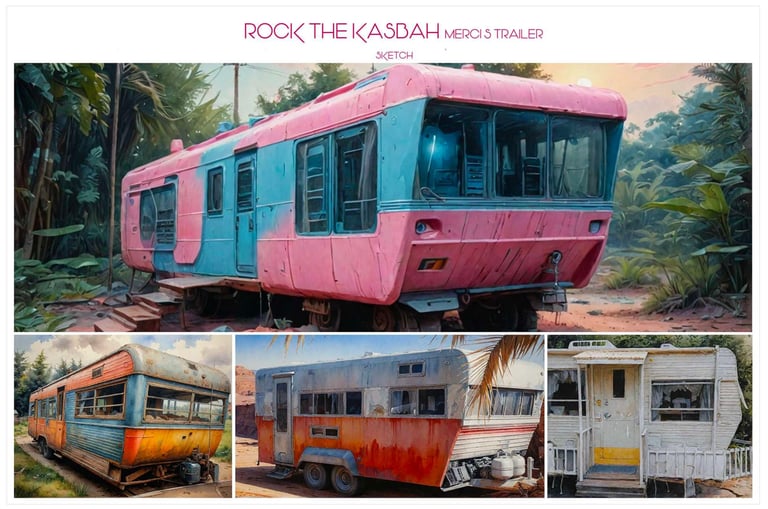 The production was set across Marrakech's colonial locations and medina districts. The central construction was Merci's Trailer — the caravan home of the protagonist, built to 1:20 scale with fully detailed interiors and custom elevations. Every surface designed to feel lived-in and authentic against the backdrop of Morocco.
