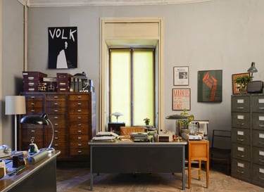 ✦ From the set: The art department was based above the Atlantic in Tiznit — a remote fishing village with no electricity. The office was a house on the ocean. Lunches with the sound of waves below. One of