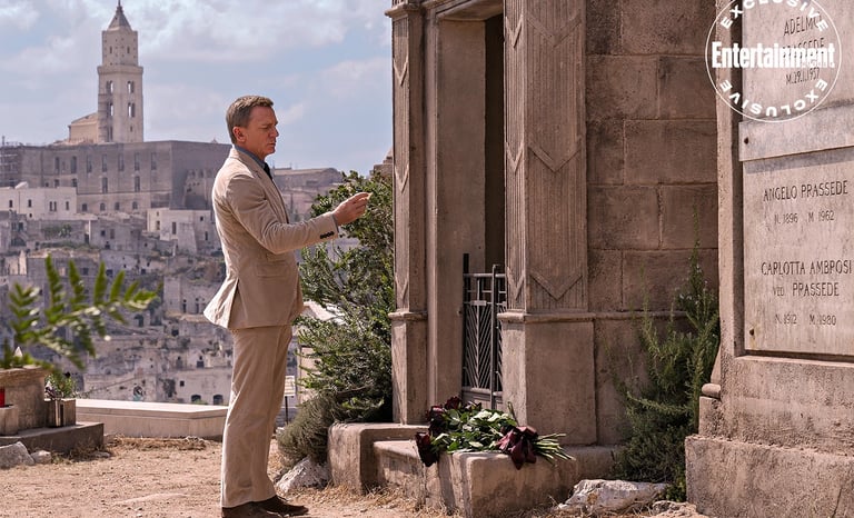 ✦ From the set: Matera is a small city. The Bond crew numbered at least five hundred — plus tourists, because that year Matera was the European Capital of Culture. The whole city was the set, and the whole world wanted to watch.